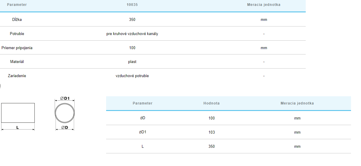 | Okrúhle potrubia PLASTOVÉ-vnútorný ⌀ | ⌀100mm |