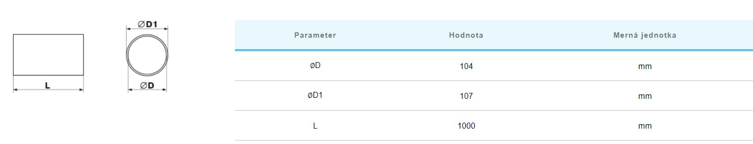 1010/2 VENTS Plastové potrubie okrúhle Ø 104mm, 1m na vzduchotechniku