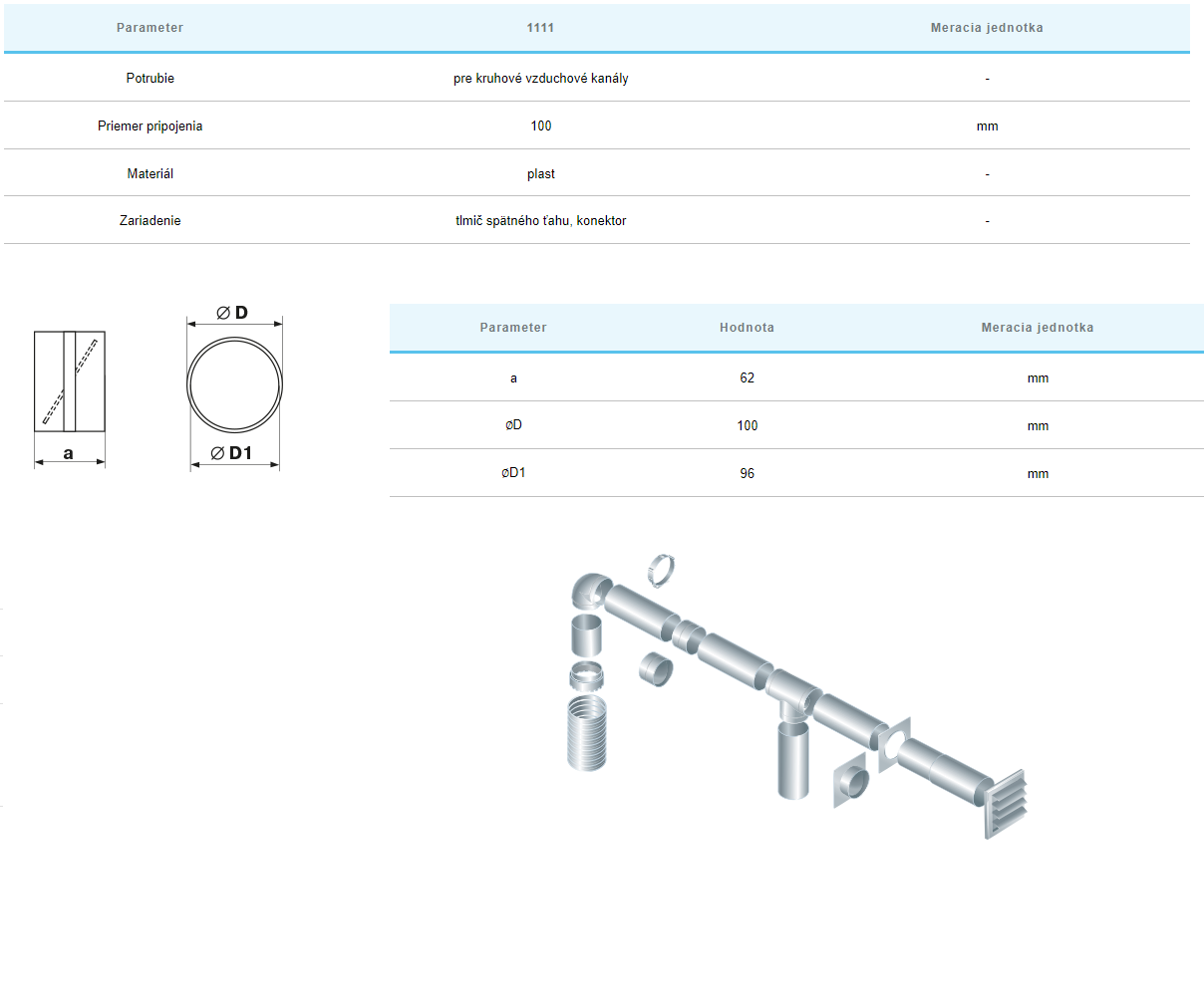 | Okrúhle potrubia PLASTOVÉ-vnútorný ⌀ | ⌀100mm |