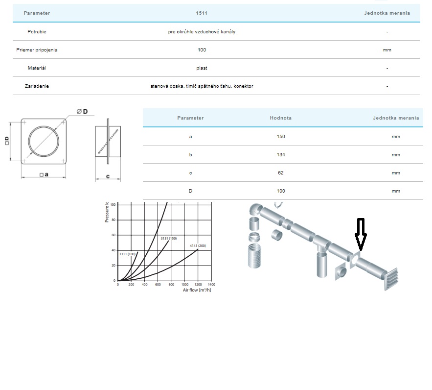 Plastová spätná klapka s prírubou na upevnenie k okrúhlym potrubiam. Klapka sa vsúvajú do potrubia Ø 100mm a slúži na pripojenie vzduchových potrubí rovnakého priemeru. Jej úlohou je uzatvoriť prívod vzduchu do potrubného systému.