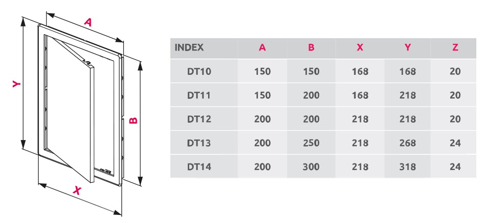 Hnedé plastové dvierka DT 12-200×200 sú určené na montáž na stenu alebo do stropu, umožňujú rýchly prístup k inžinierskym sieťam.