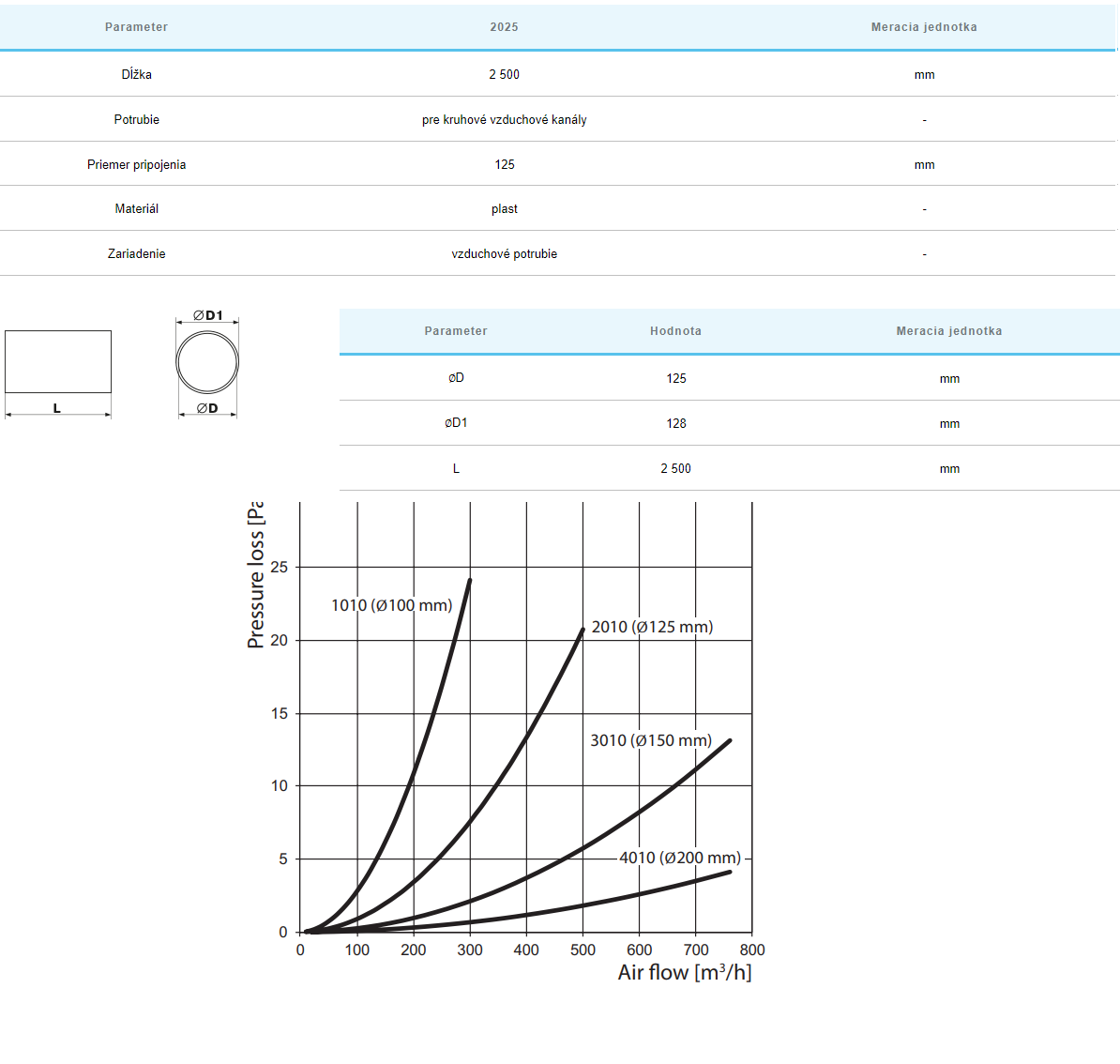 | Okrúhle potrubia PLASTOVÉ-vnútorný ⌀ | ⌀125mm |