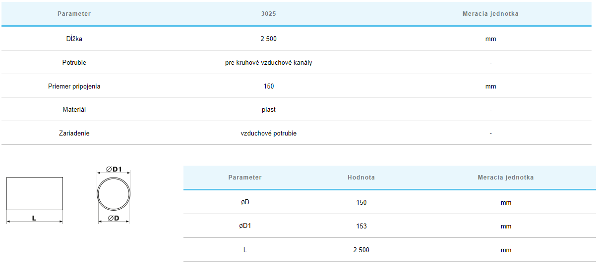 | Okrúhle potrubia PLASTOVÉ-vnútorný ⌀ | ⌀150mm |