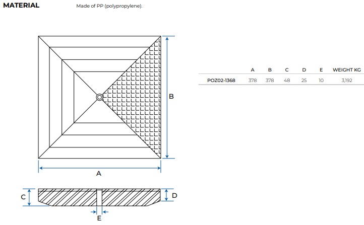 Dakota 400×400 poklop šedej farby je vyrobený z polypropylénu a je určený na osadenie do revíznych šácht alebo rámov určených na zabetónovanie. Poklopy a rošty z plastu k šachtám sú určené pre záťaž A15, preto je možné ich príležitostne prechádzať aj osobnými autami.