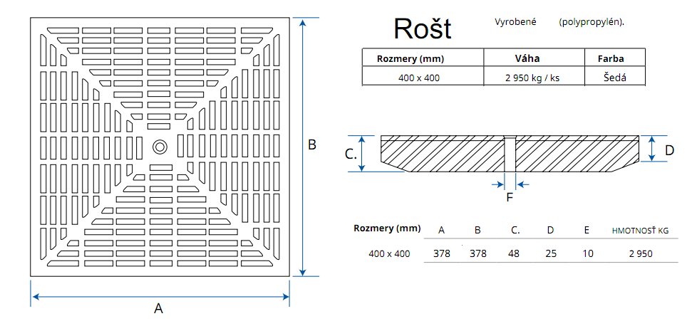 | Plastové poklopy revízne šachty a príslušenstvo | 400x400mm |
