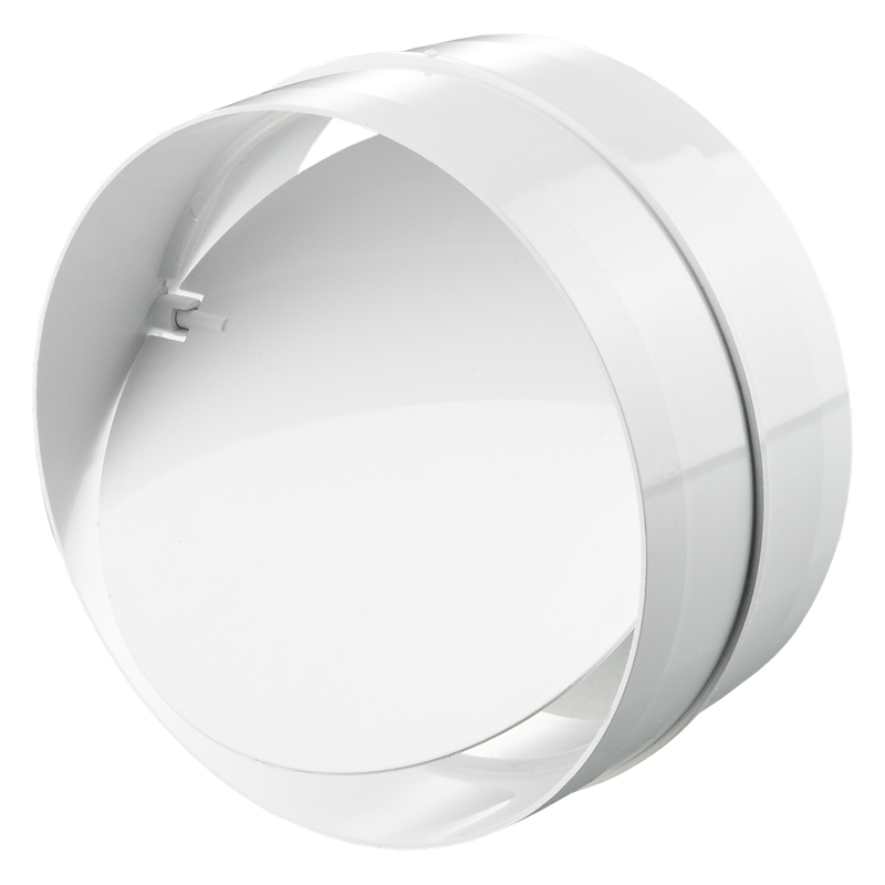 Plastová spätná klapka k okrúhlym potrubiam Ø 200mm. Klapka slúži ako spojka pre potrubia Ø 200mm a nasúvajú sa do vnútra potrubia z oboch strán. Zároveň klapka zamedzuje prívodu vzduchu do potrubného systému vetrania. Konštrukcia: Určené pre priamu inštaláciu do vzduchového potrubia. Vyrobené z bieleho plastu. Vybavená spätným tlmičom na zamedzenie spätného toku. Navrhnuté na priamu inštaláciu do vzduchového potrubia a vybavené poistným krúžkom.