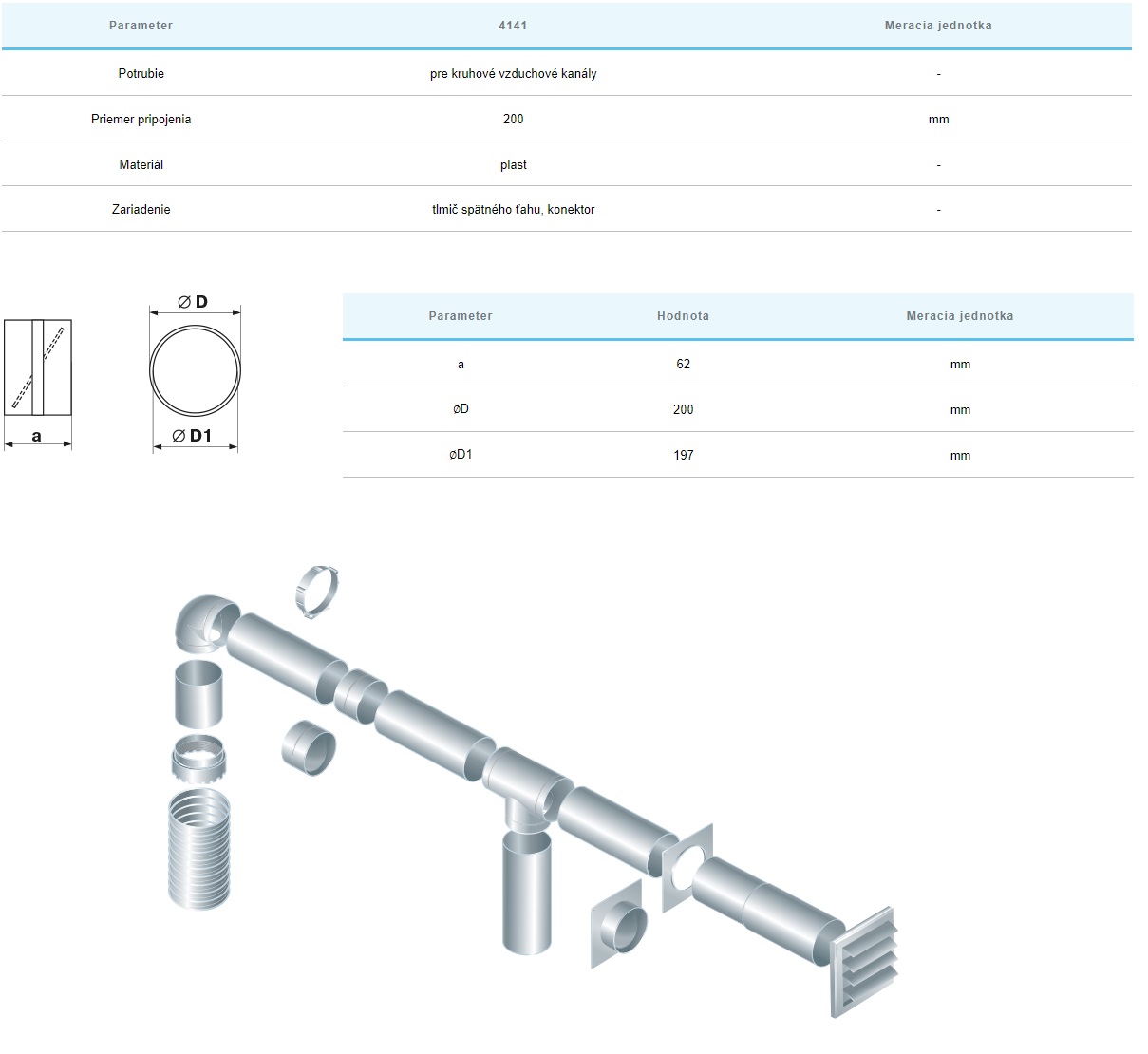 | Okrúhle potrubia PLASTOVÉ-vnútorný ⌀ | ⌀200mm |