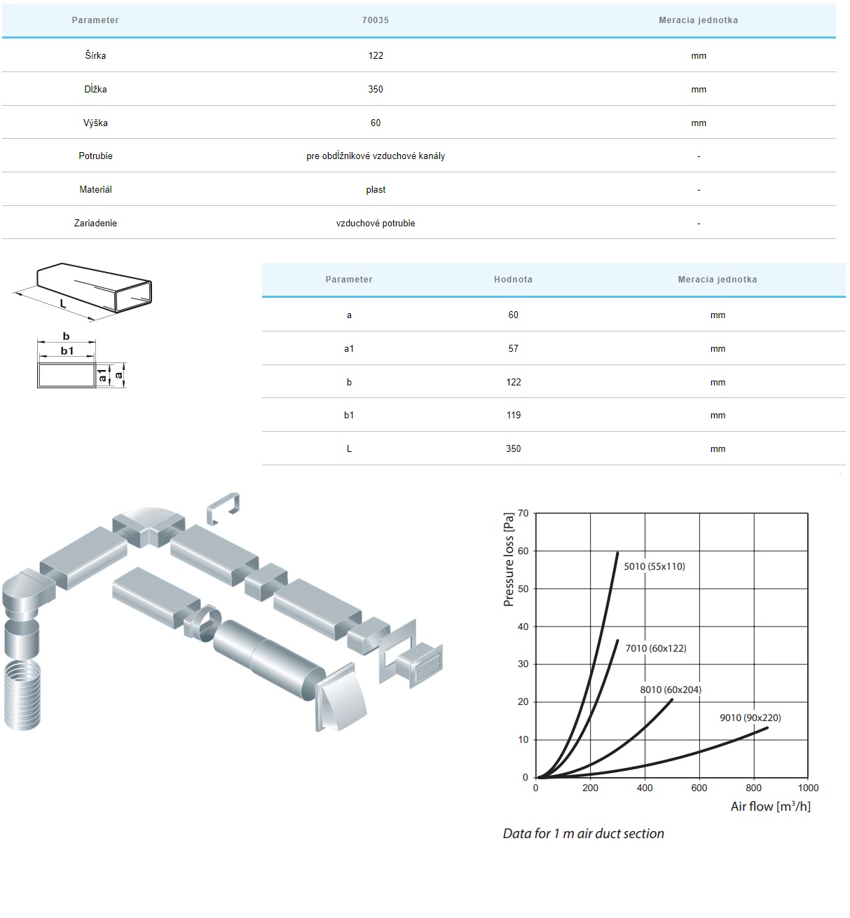 Kód: 550 Awenta- Hranaté potrubia PLASTOVÉ- □ Výška × Šírka : □ V × Š-60x120mm