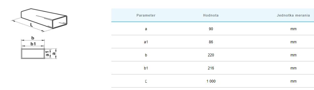 Plastové potrubie hranaté 90x220mm, dĺžka 1m, vyrobené z bieleho PVC. Použitie: -30°C do +70°C. Určené pre prívod a odsávanie vzduchu.