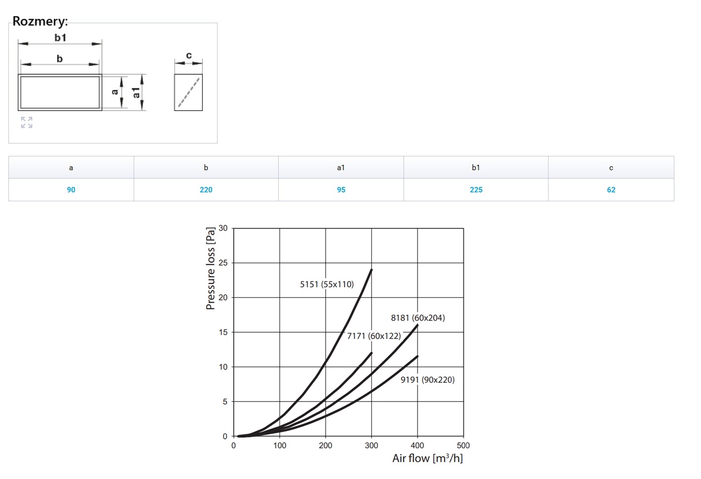 | Hranaté potrubia PLASTOVÉ- □ Výška × Šírka | □ V × Š-90x220mm |