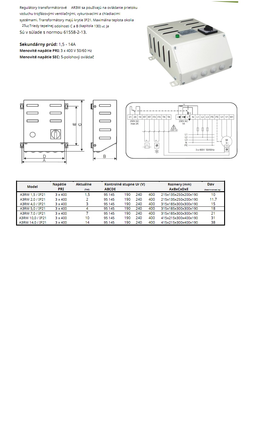 A3RW-2.0/1/S/IP21 380V regulátor otáčok 2A pre ventilátory