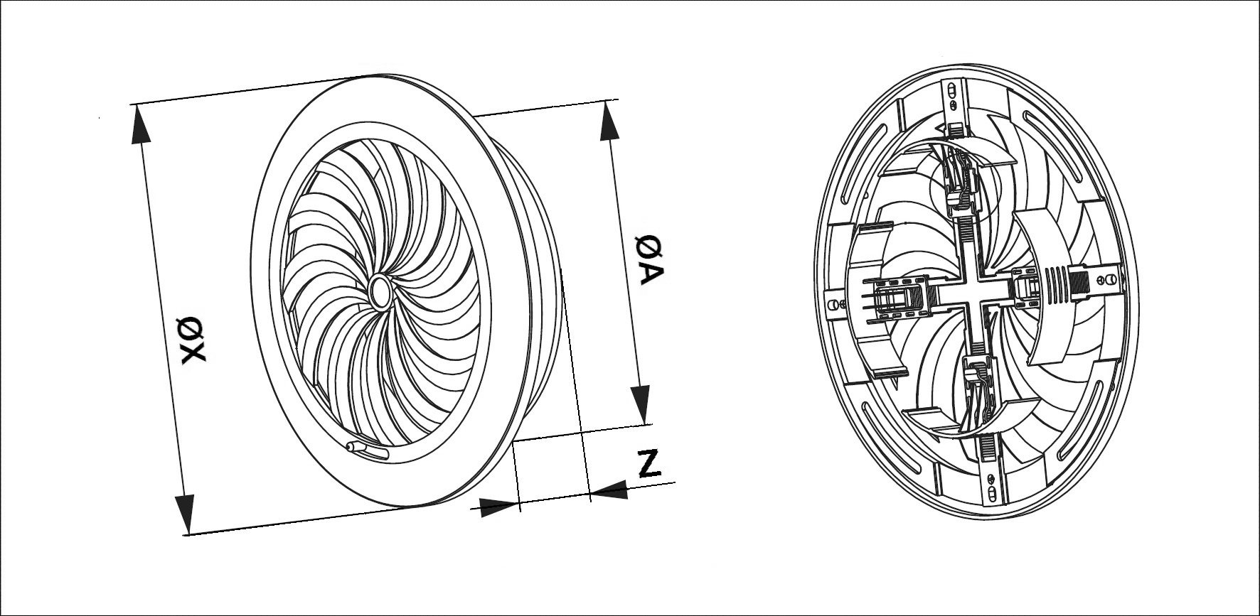 | Mriežky pre Ø mm-exterier-interier-do podhľadu | ⌀150mm-potrubie |