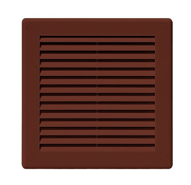 HNEDÁ plastová vetracia mriežka so sieťkou proti hmyzu. Krycia plocha: 150x150mm. Vetracia mriežka je vyrobená z kvalitného a odolného plastu. Materiál: ABS plast, odolný proti UV žiareniu.