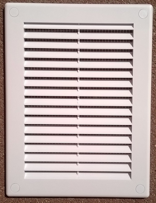 Vetracia mriežka MV125S, plastová biela, 182x251mm, so sieťkou proti hmyzu