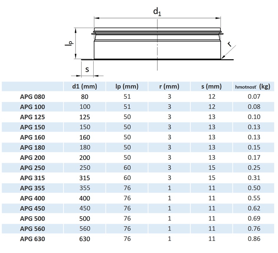Pozinkovaná vzduchotechnická spojka s prírubou a gumovým tesnením APG Ø150mm. Spojka je vyrobená z galvanizovanej ocele. Pripojovací nástavec 90°, s gumovým tesnením s triedou vzduchotesnosti D podľa EN 12237. Trieda vzduchotesnosti závisí aj od montáže na stavbe.