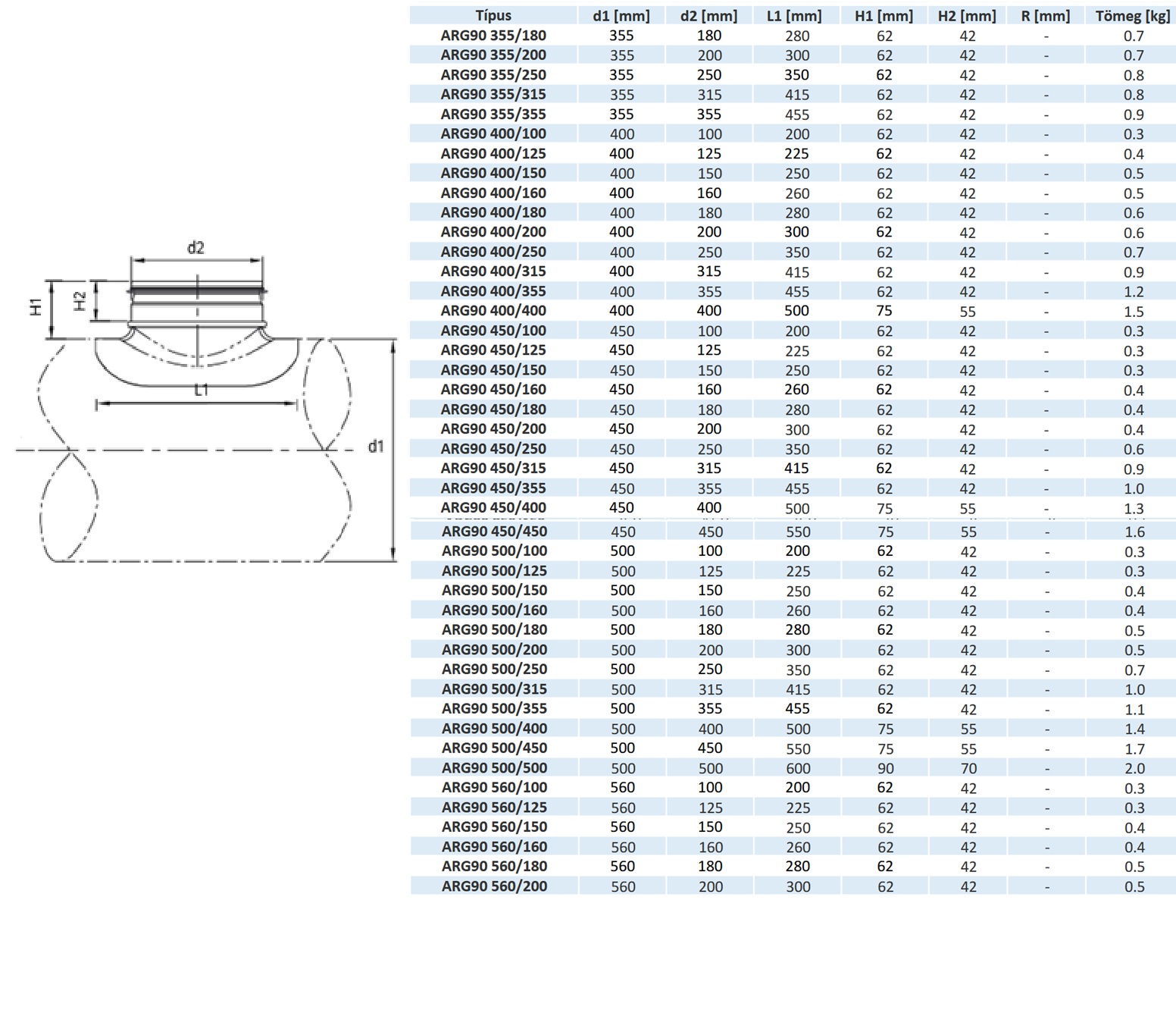 ARG 90 – Sedlo na spiro potrubie 315/125mm s gumovým tesnením
