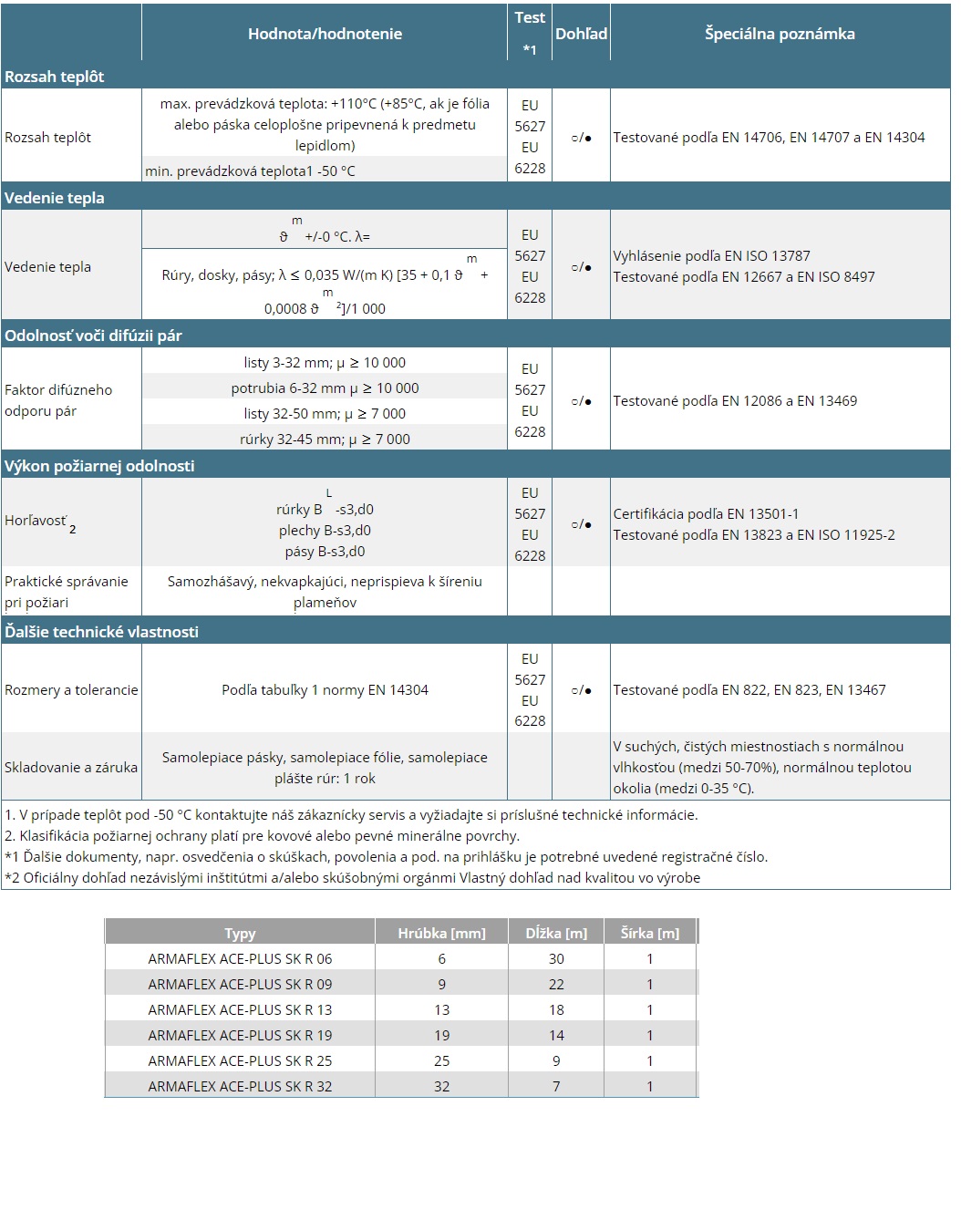 Materiál: Elastomérna pena na báze syntetickej gumy. Továrenská flexibilná elastomérová pena (FEF) podľa EN 14303. Farba čierna.