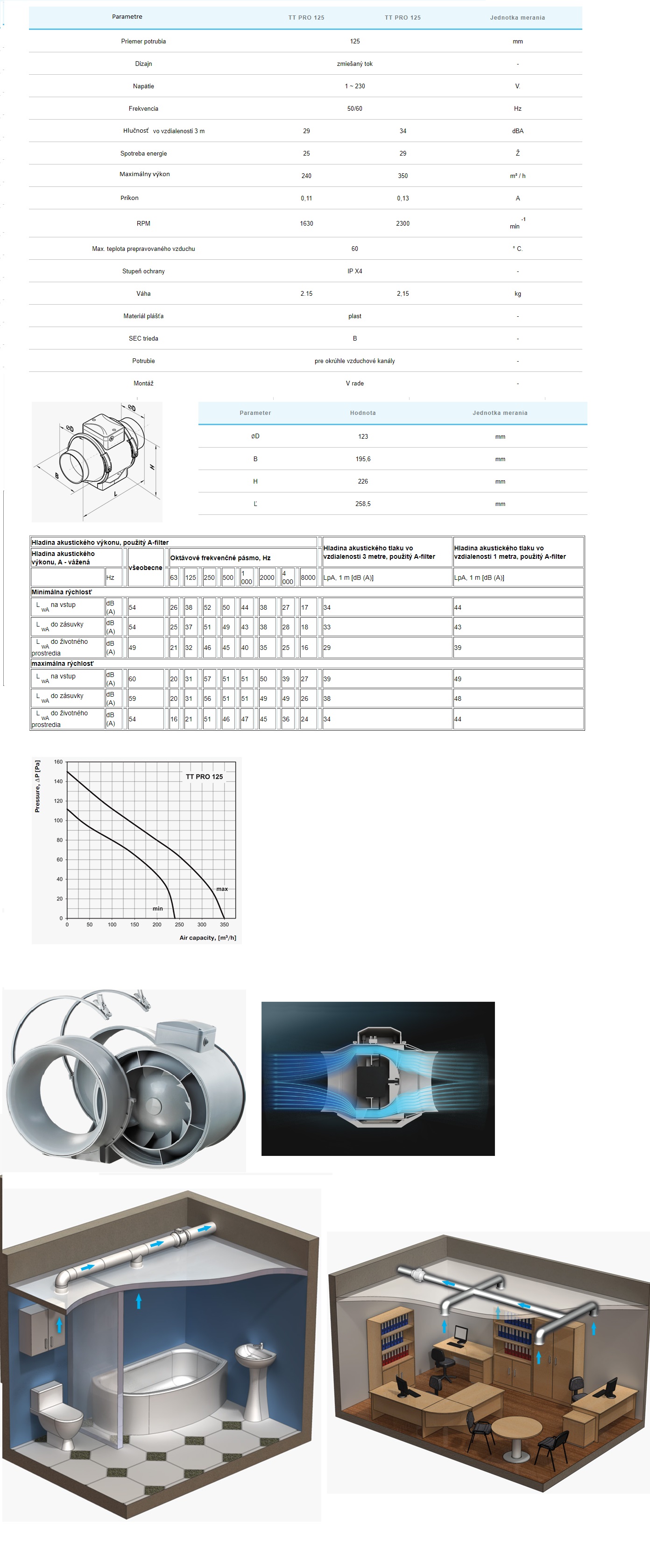 Kód: 320 VENTS- Priemyselné ventilátory pre potrubie ⌀ : ⌀125mm-Filter zaradenia medzi výkon od 114-do 505m3/h
