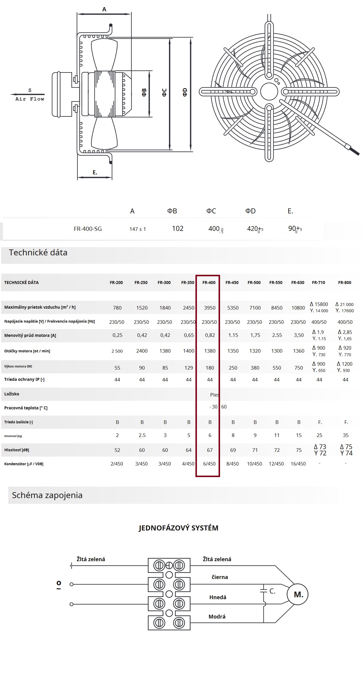 | Nástenné priemyselné ventilátory-⌀D-lopatky | ⌀400mm-Filter zaradenia medzi výkon od 3580-do 3950m3/h |