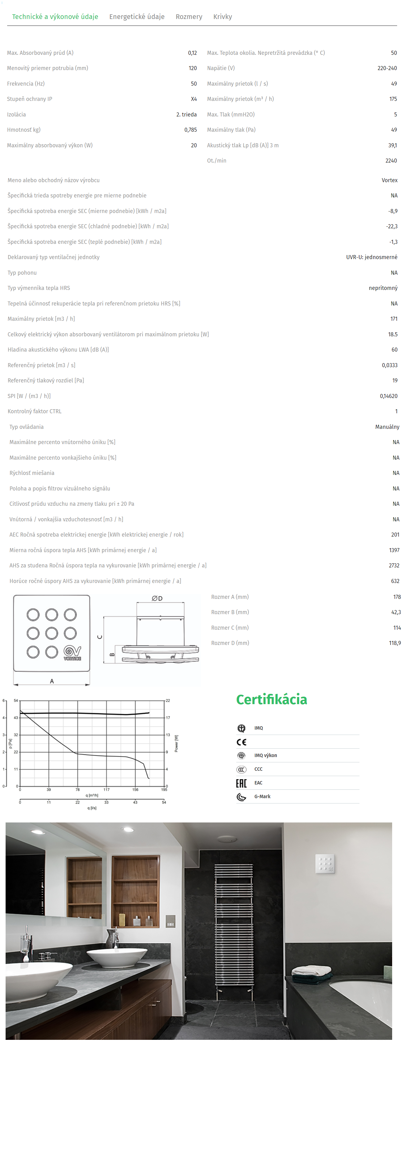 | Ventilátory-IP ochrana:Bezpečnosť vo vlhkom prostredí | Mimo zón:60cm od vane/sprchy ostatné časti kúpeľne–IPx2 a viac, Zóna 2:do 60 cm od vane/sprchy–min. IPx4 |