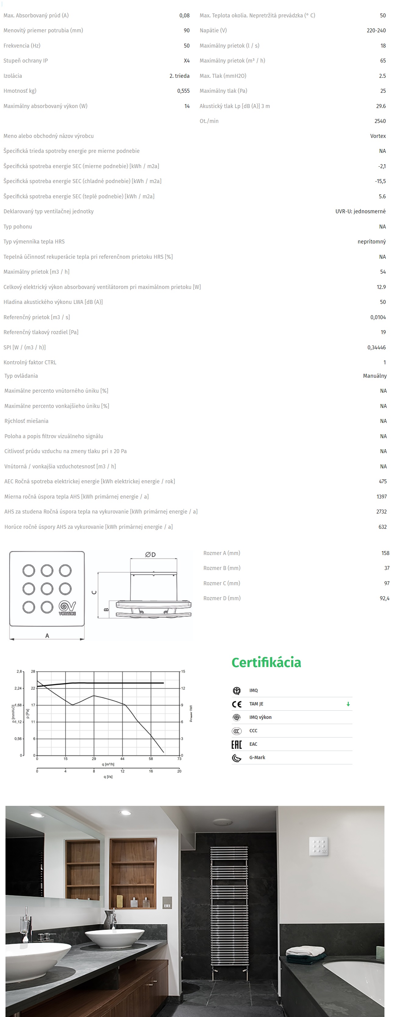- Vlastnosti-výbava ventilátora : Gulôčkové ložisko-vhodná do stropu aj na stenu, Parový /vlhkostný/senzor má automaticky časový dobeh, Spätná klapka