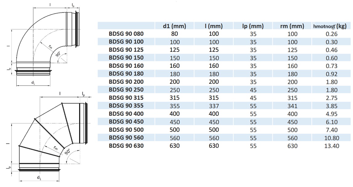BDG90 – 90° koleno s gumovým tesnením Ø125mm