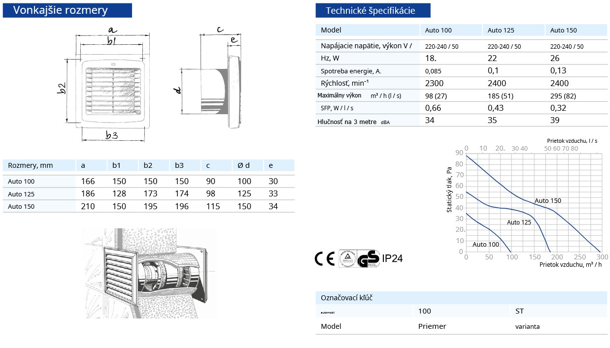 Kód: 437 Blauberg- Vlastnosti-výbava ventilátora : Automatická žaluzia, Časový dobeh, Gulôčkové ložisko-vhodná do stropu aj na stenu