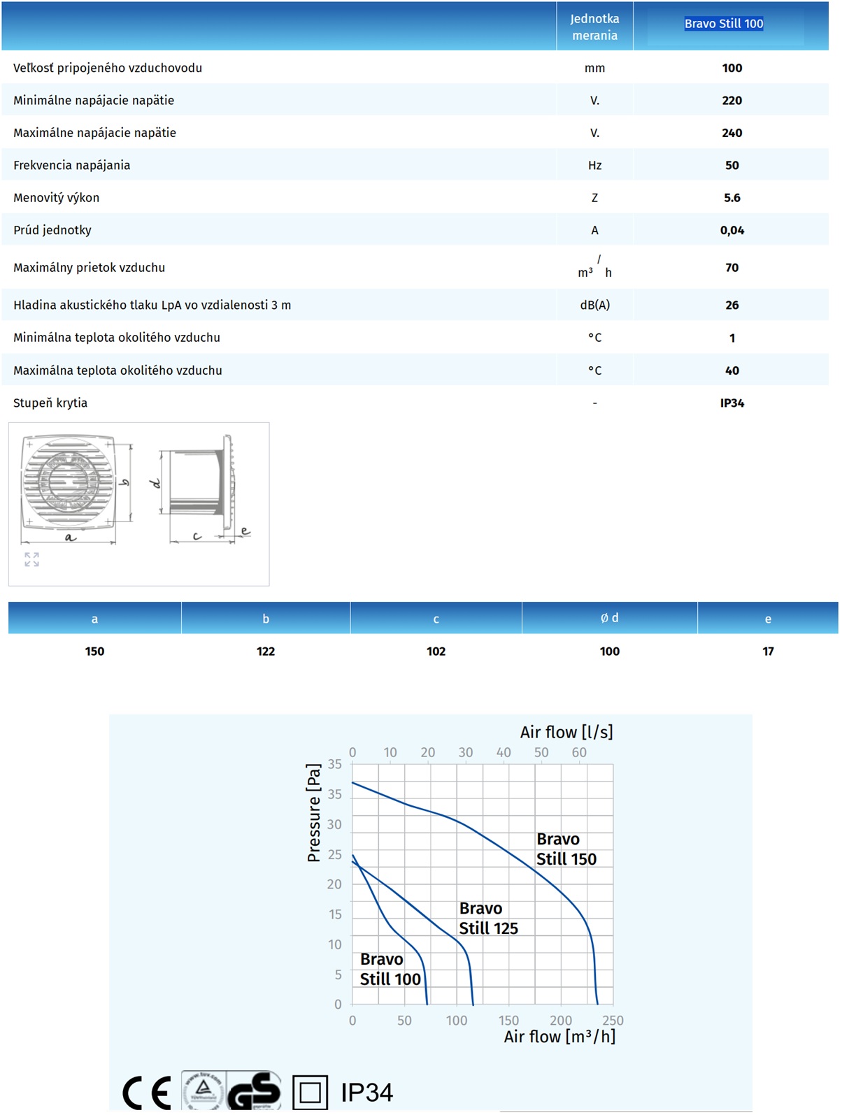 Ventilátor BLAUBERG BRAVO STILL100 pre potrubie 100mm s výkonom 70m³/h. Tento ventilátor je vhodný na stenu aj do stropu. Typ: základ – riadenie vypínačom na svetlo. Moderný dizajn a estetický vzhľad. Puzdro a obežné koleso sú vyrobené z vysoko kvalitného ABS plastu, odolného voči UV žiareniu. Vysoká účinnosť a dlhá životnosť. Hladina akustického hluku LpA vo vzdialenosti 3 m: od 26 dB(A). Typ motora: AC. Materiál puzdra: Plast. Ochrana proti spätnému toku: spätná klapka + guľôčkové ložisko.