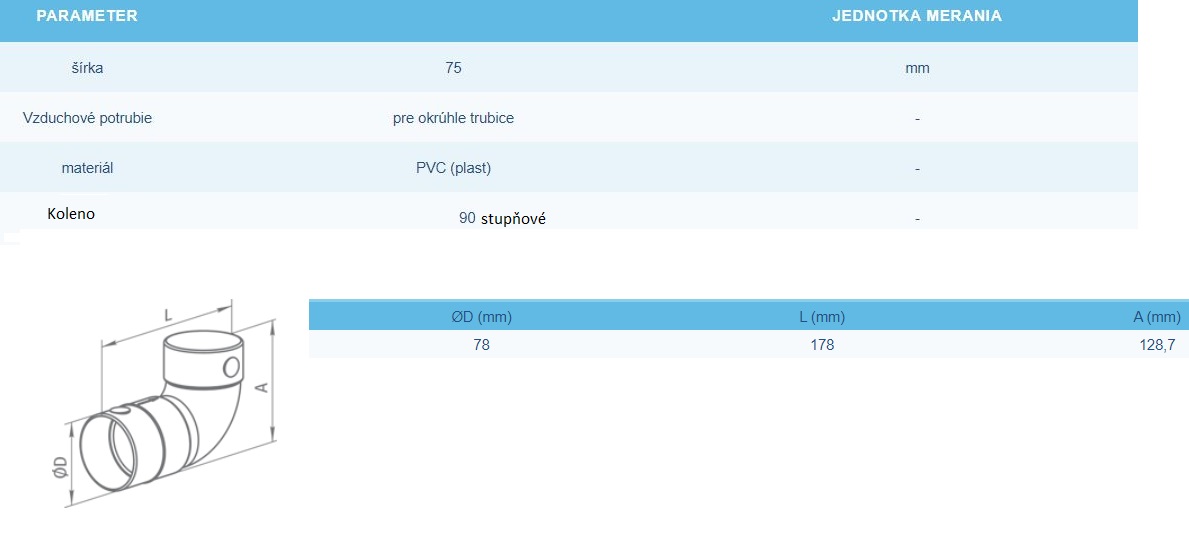 Odbočka Blauberg RB 75 DN75 je určená na pripojenie vetracích potrubí k tesným ohybom. Je vyrobená z PVC a odoláva prevádzkovým teplotám od -20 do +60 °C.