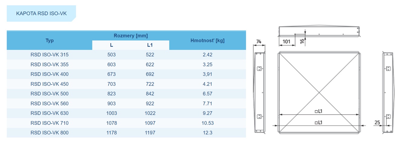 Vrchný kryt pre ventilátor ISO-VK, model RSD 315.