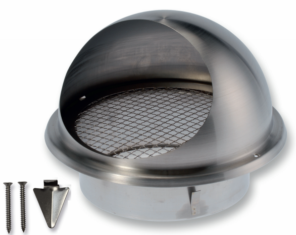 Okrúhla nerezová vetracia mriežka s protidažďovým krytom a naustkom.