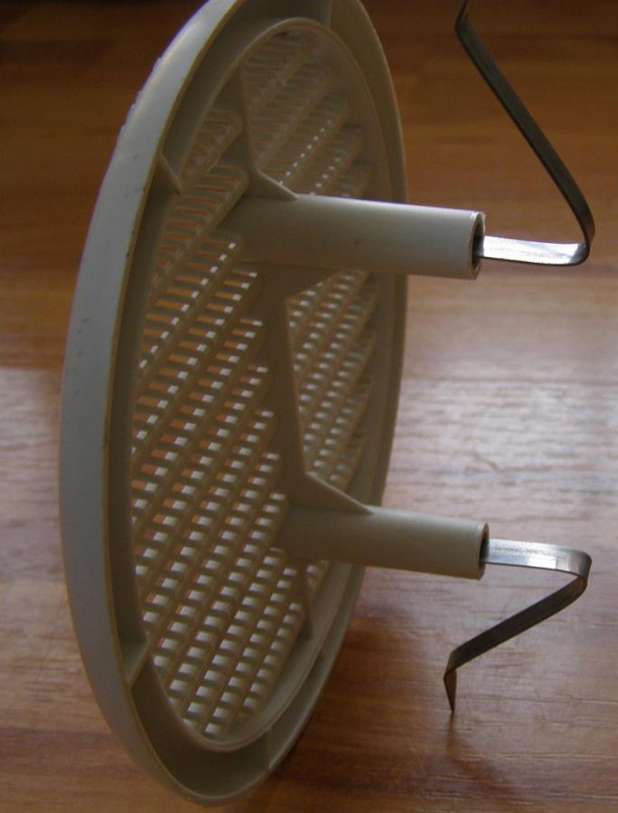 Návod: Stlačíme pružiny k sebe a mriežku nasunieme do otvoru