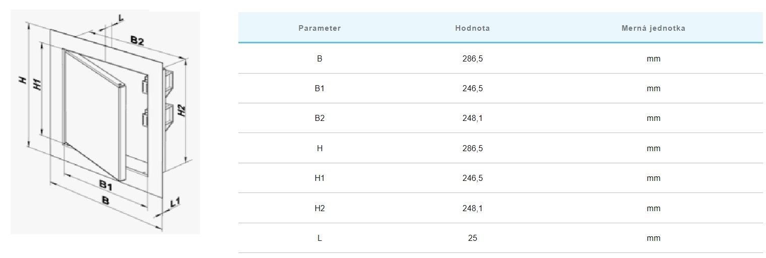| Revízne dvierka rozmery šírka-výška | 250x250mm |