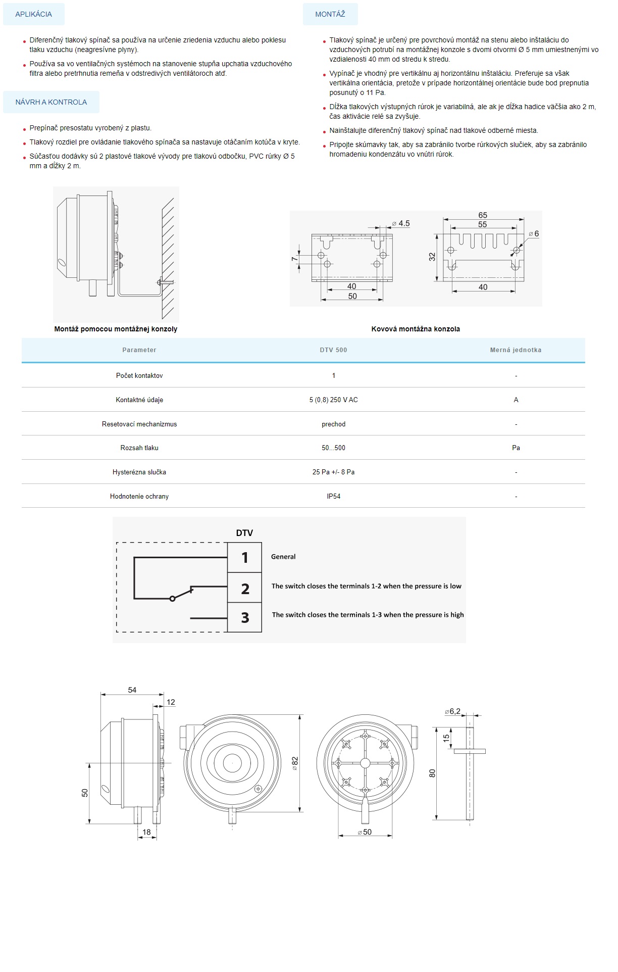 DTV 500 Tlakový spínač – Regulátor tlaku je vyrobený z plastu