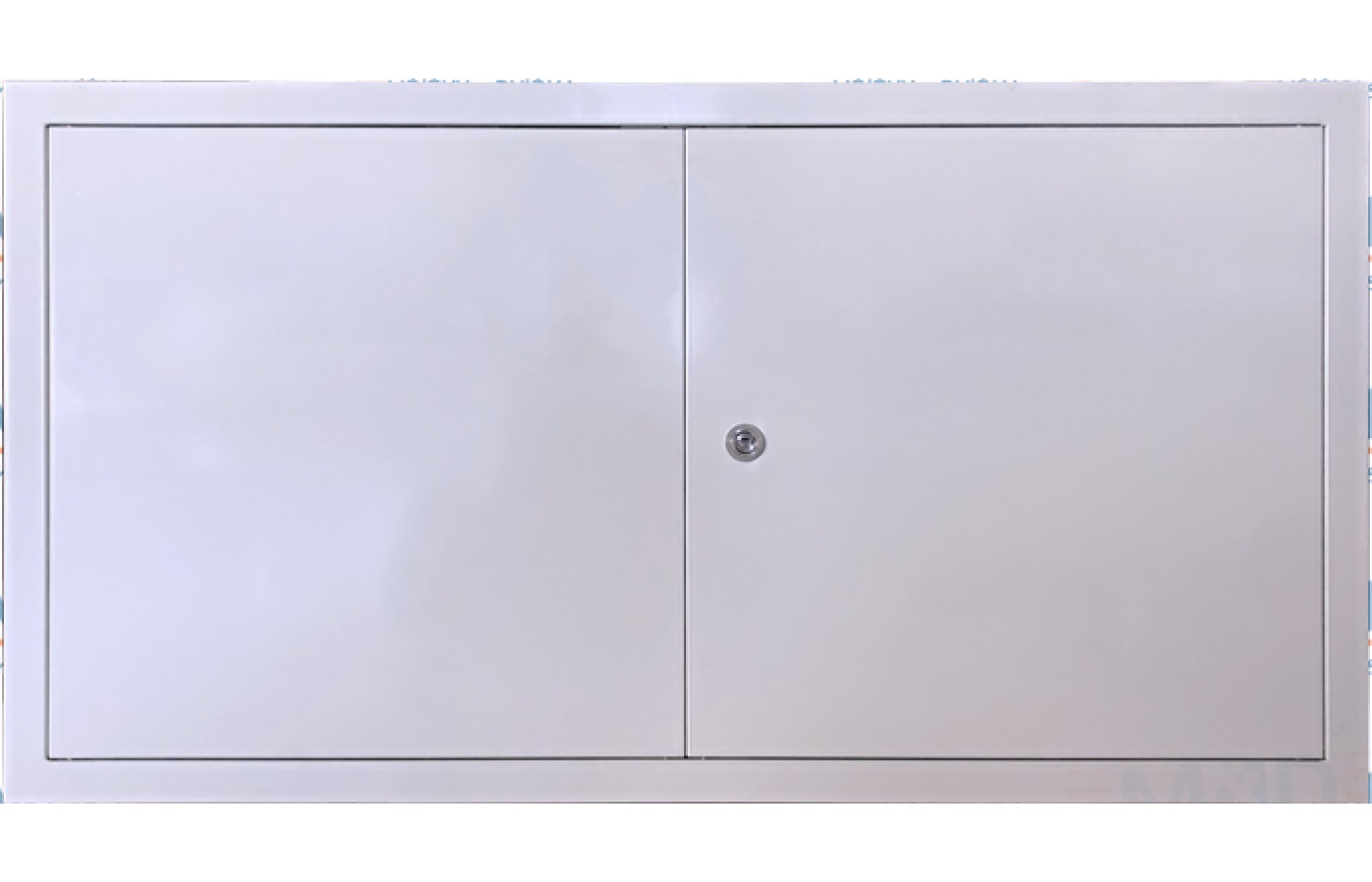 Dvojkrídlové revízne dvierka šírka 1200x výška 600 mm bez stredového stĺpika. Vyrobené z pozinkovaného plechu o sile 1,0 mm, biele lakované RAL 9010.