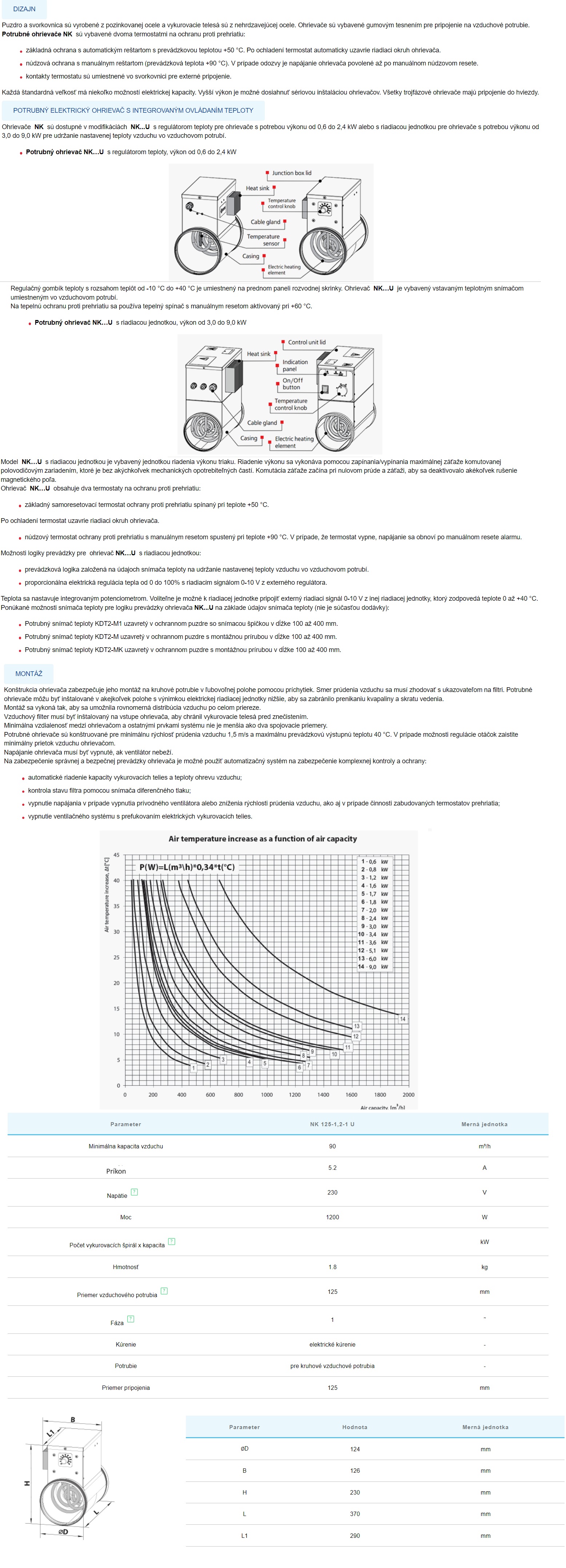VENTS NK-125-1,2-1U elektrický potrubný ohrievač je určený na ohrev privádzaného vzduchu v kruhovom potrubí ventilačného systému. Je vhodný pre vykurovacie a klimatizačné systémy.