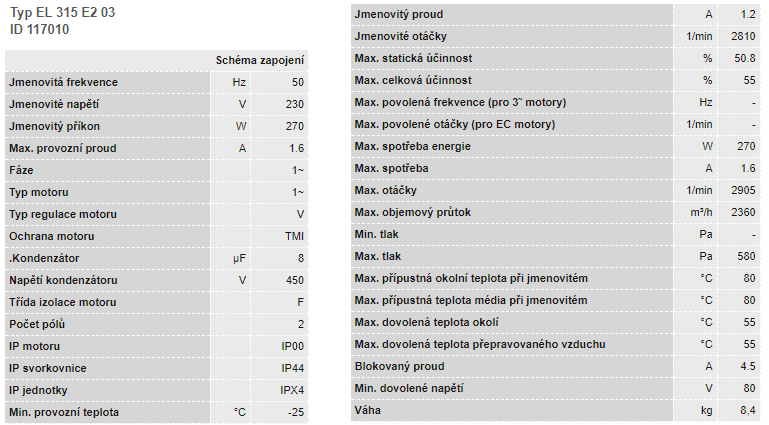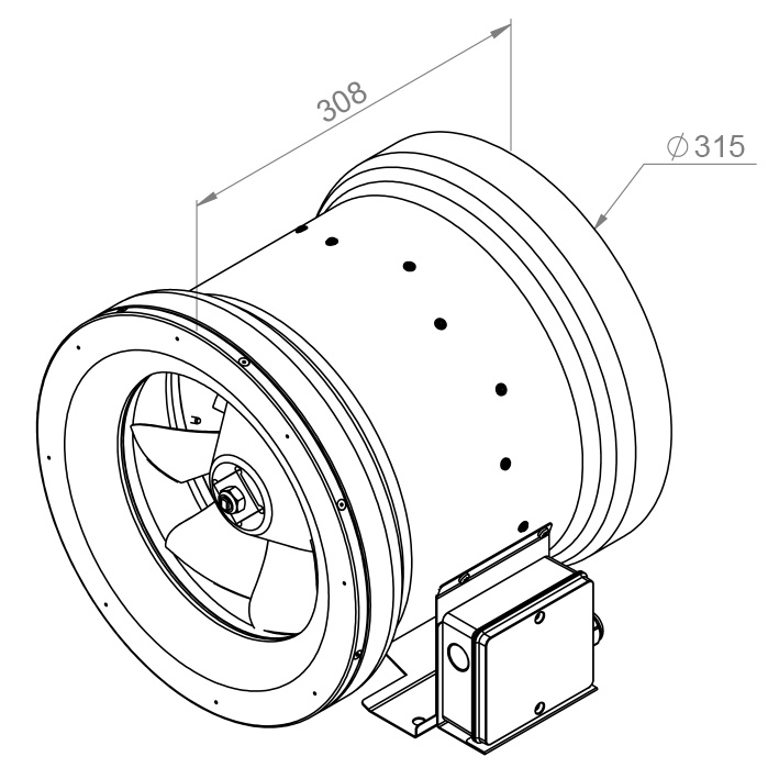 ETALINE 315 E2 01 Poloradiálny potrubný ventilátor 3510 m³/h