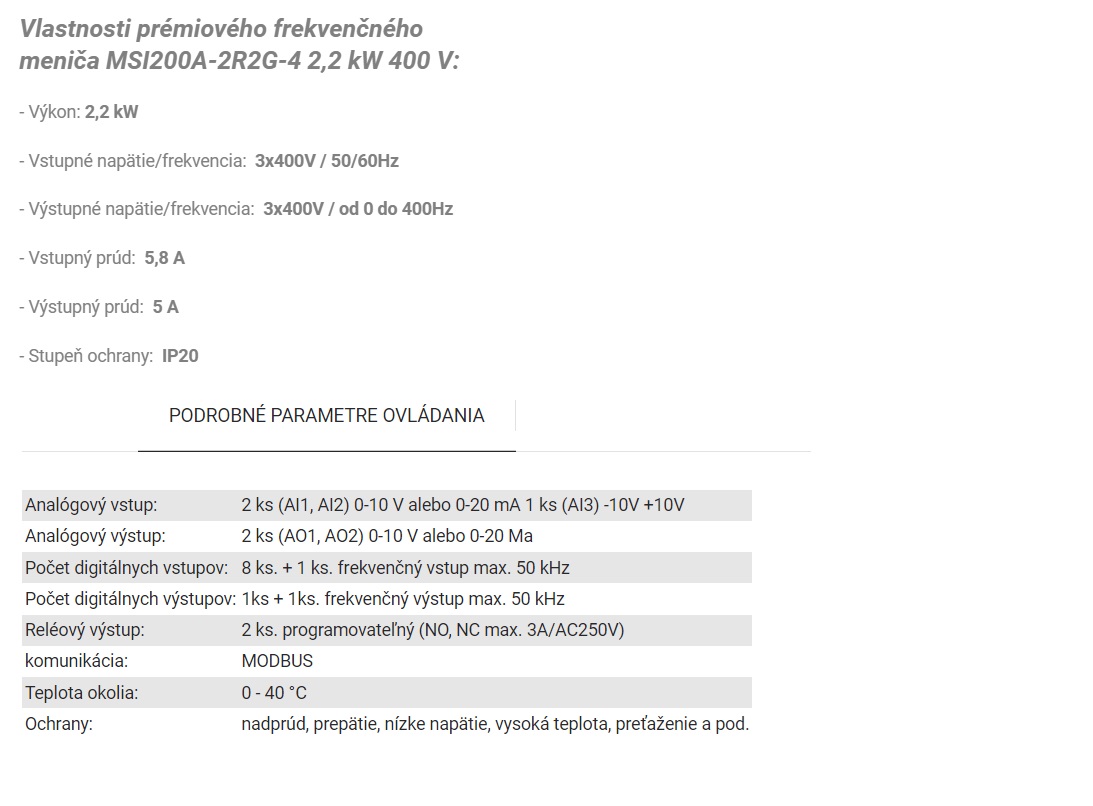 Morgensen MSI200A-2R2G-4 Frekvenčný menič 2,2kW 400V s PID. Séria MSI200 ponúka profesionálne riešenie pre všetky úlohy s bohatými možnosťami.