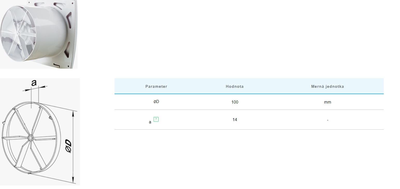 - Vlastnosti-výbava ventilátora : Automatická žaluzia, Časový dobeh