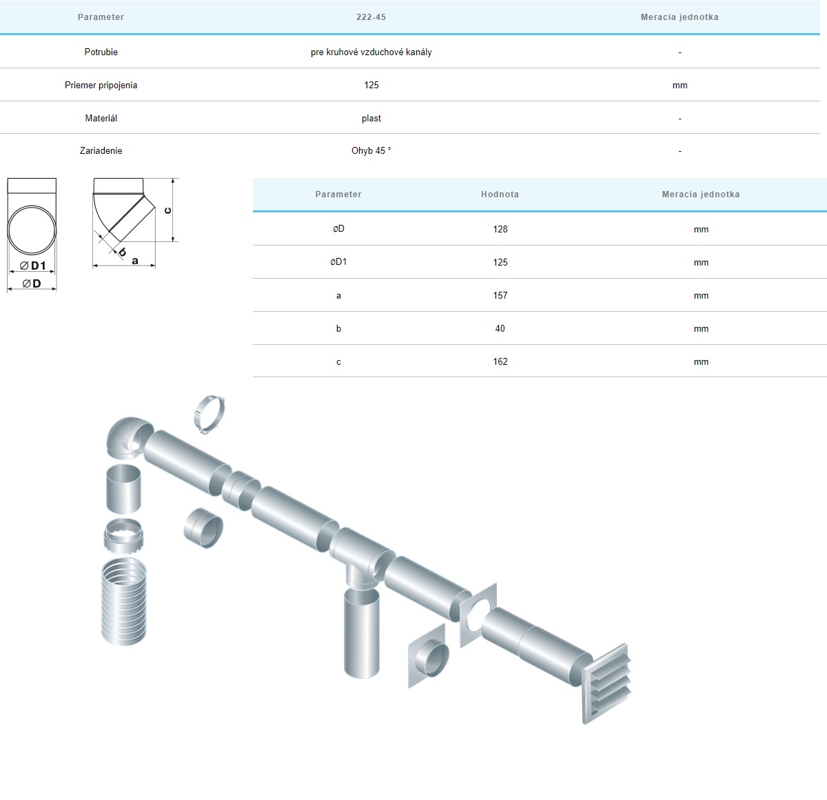 | Okrúhle potrubia PLASTOVÉ-vnútorný ⌀ | ⌀125mm |