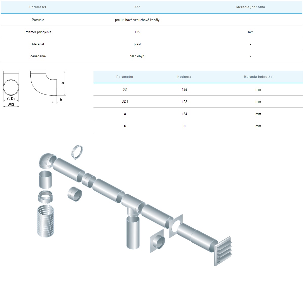 | Okrúhle potrubia PLASTOVÉ-vnútorný ⌀ | ⌀125mm |