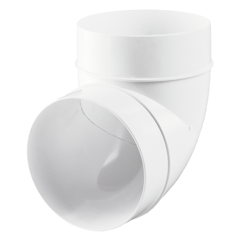 Plastové koleno Ø125mm vyrobené z bieleho plastu. Určené na pripojenie vzduchových potrubí rovnakého priemeru pri 90 °.
