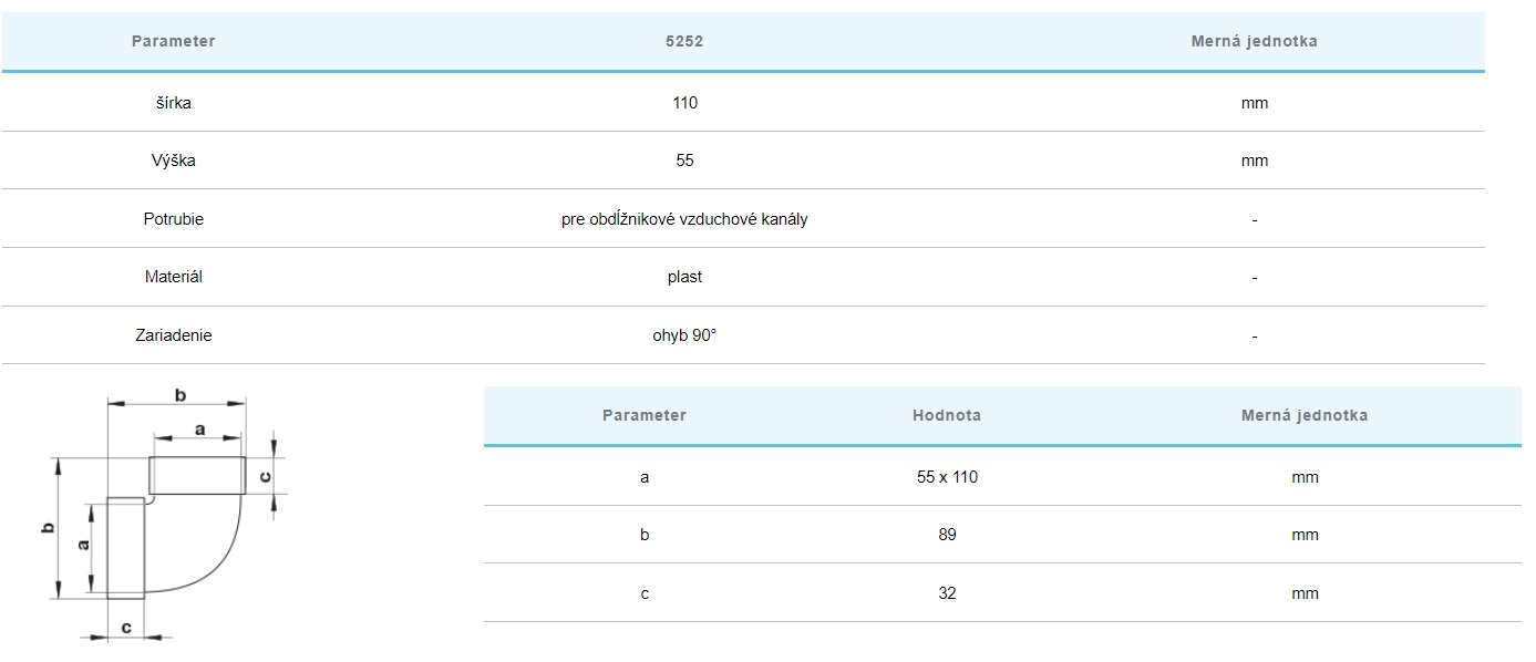| Hranaté potrubia PLASTOVÉ- □ Výška × Šírka | □ V × Š-55x110mm |