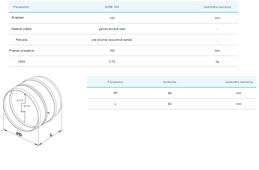 | Kovové-Hliníkové-Nerezové-Okrúhle-potrubie-+príslušenstvo | ⌀100mm |