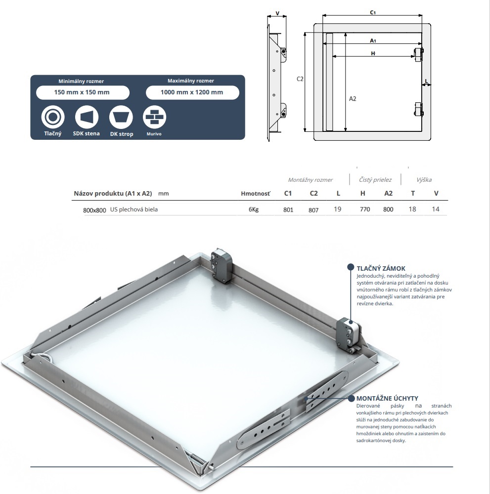 | Revízne dvierka rozmery šírka-výška | 800x800mm |