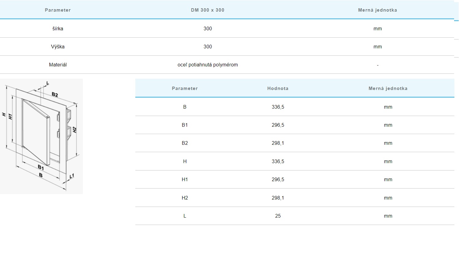 | Revízne dvierka rozmery šírka-výška | 300x300mm |