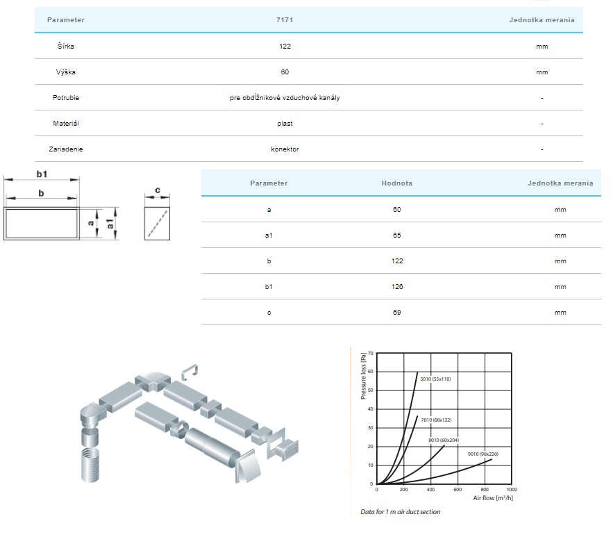 Kód: 585 VENTS- Hranaté potrubia PLASTOVÉ- □ Výška × Šírka : □ V × Š-60x204mm