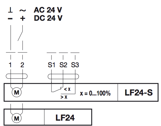 - Menovité napätie: LF 24- (S) 24 V AC / DC