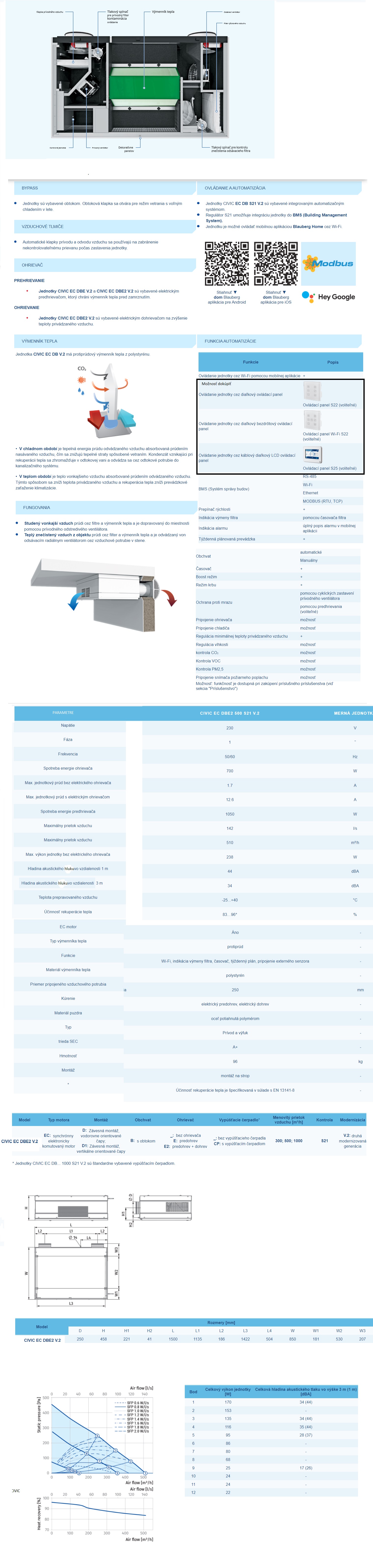 Blauberg CIVIC EC DBE2 500 S21 V.2 – Lokálny rekuperátor 510 m³/h s predohrevom