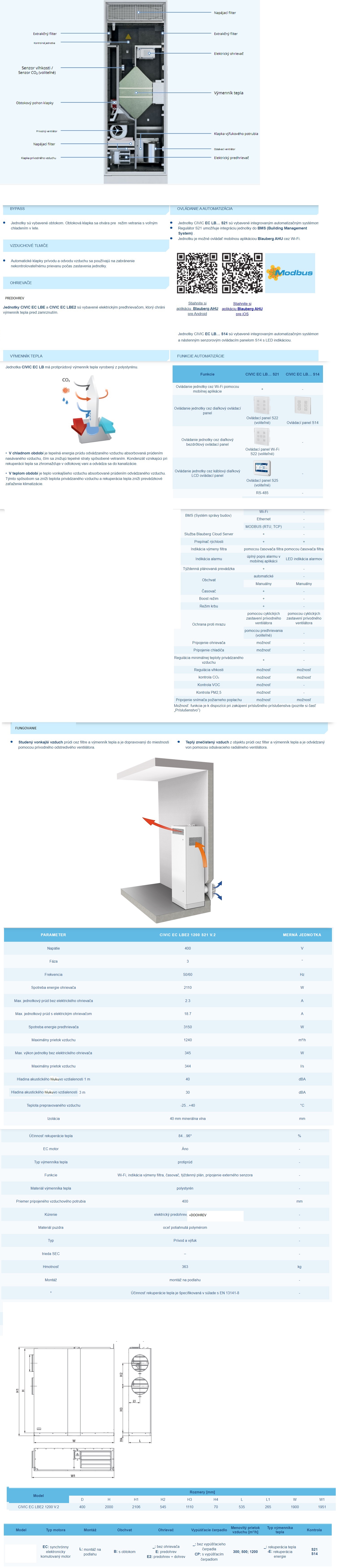 Blauberg CIVIC EC LBE2 1200 S21 V.2 – 1240m³/h, 3-fázový 400V, ovládanie smartfónom, je určený na vetranie škôl, kancelárií a iných verejných a komerčných priestorov. Ponúka efektívne riešenia vetrania pre existujúce a rekonštruované budovy bez potreby vzduchovodov.